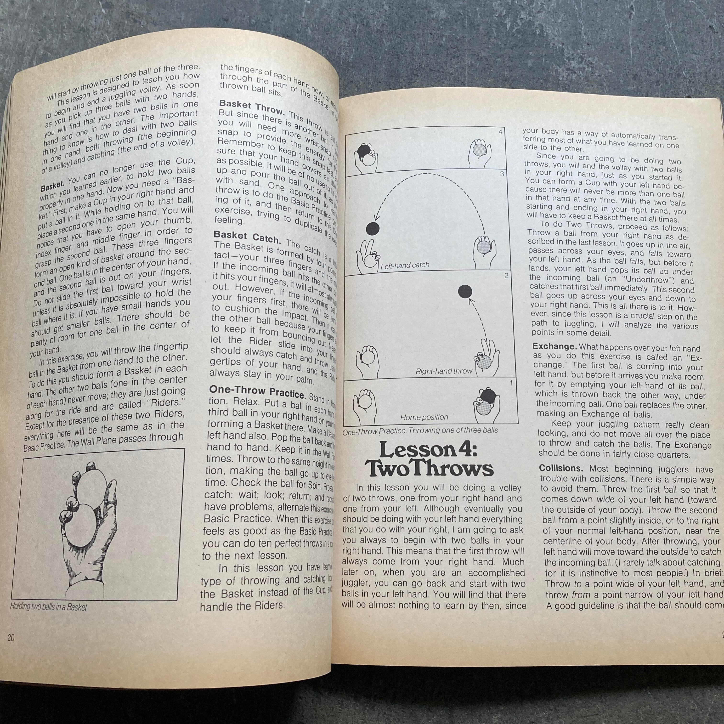 There’s a wealth of material here, some nice advanced stunts — the progression from 3 to 4 ball juggling is clear and logical — and the emphasis on inner states and mindset is right on. My only complaint is not enough pictures.